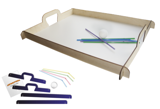 Поле с воротами, минимяч и трубочки. Играют 2 команды по 1-3 человека. Задача без рук закатить мяч в ворота противника.